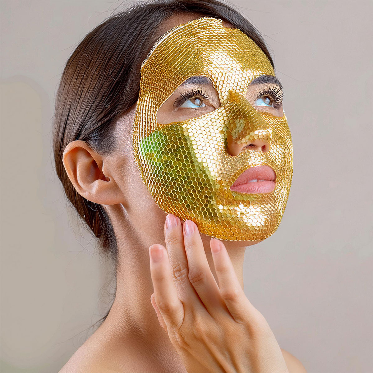 The Nourishing Gold Facial Mask features a unique honeycomb design that helps the mask fit comfortably across the contours of your face. This design helps the mask stay in place while allowing the nourishing formula to spread evenly across the skin.