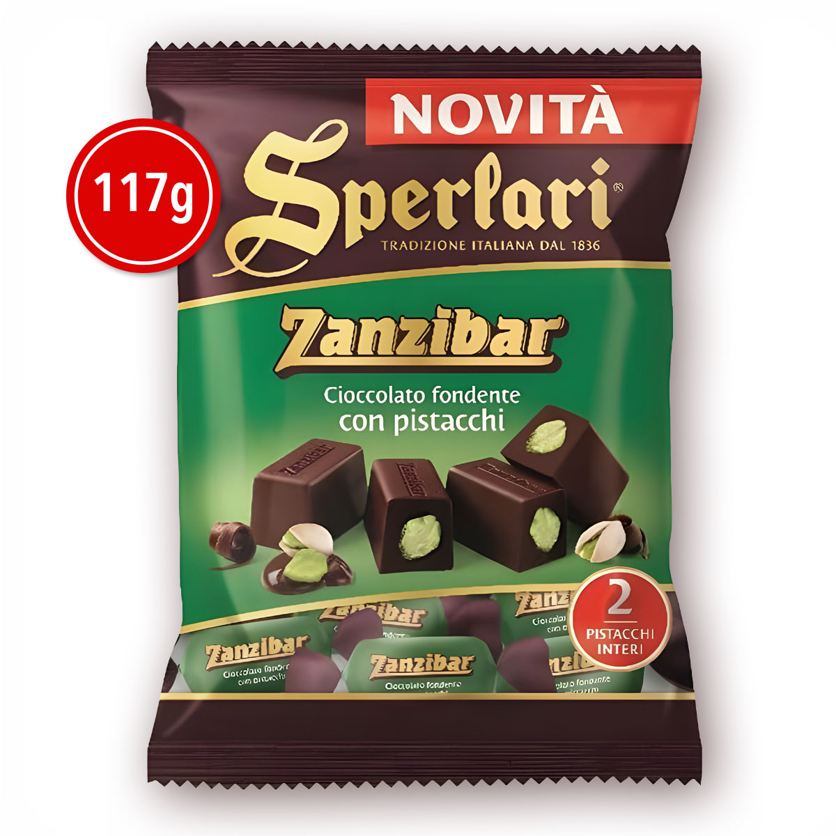 Product Description: Sperlari Zanzibar Dark Chocolate Pralines with Pistachio Nuts 117gm
